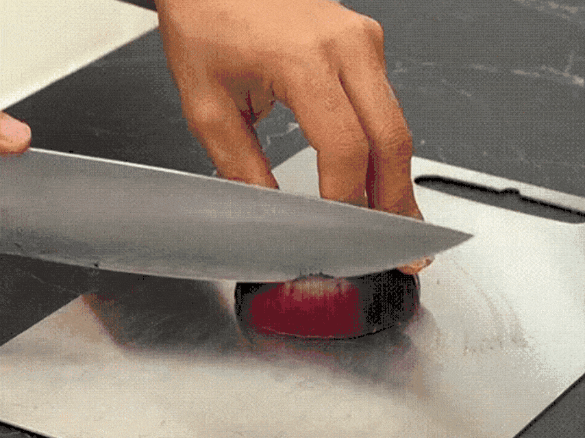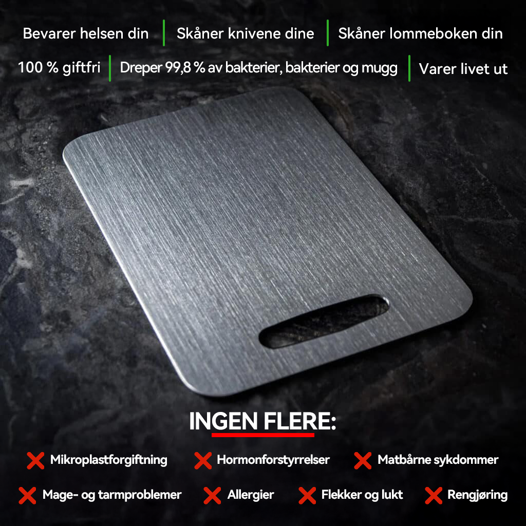 Absolutt! Titanoverflaten er tre ganger mykere enn stål, noe som gjør den mer skånsom mot knivseggen enn mange tradisjonelle skjærebrett.