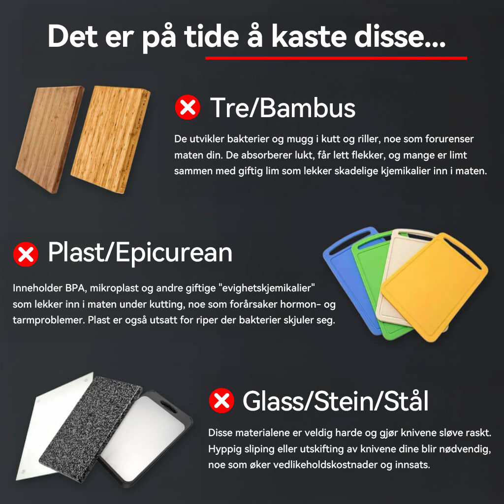 Nei. Den ikke-porøse overflaten forhindrer bakterievekst og kryssmitte, noe som sikrer trygg matlaging.